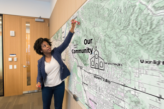 Angela R. : "Our church was looking for a unique way to showcase our history and impact in the community, and Customaps provided the perfect solution. Customaps allowed us to create a beautiful and personalized map mural that tells the story of our church's journey. With their dry erase lamination, we are using markers to update and annotate the map as needed, using it as a great tool for coordination and planning of our evangelization efforts.”